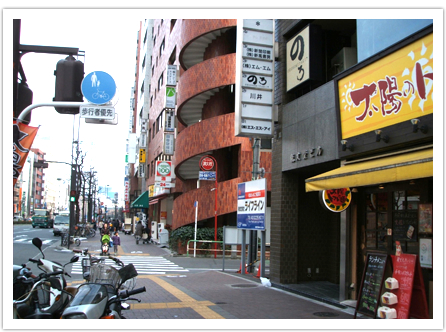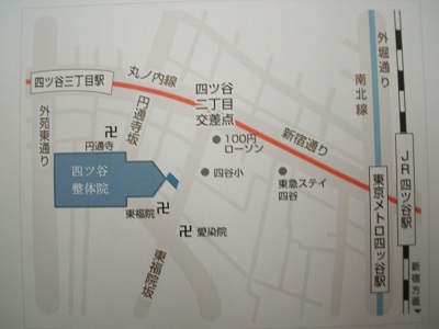 新宿通りを四ツ谷駅方向からお越しの方は四谷二丁目交差点を左折して120mです。