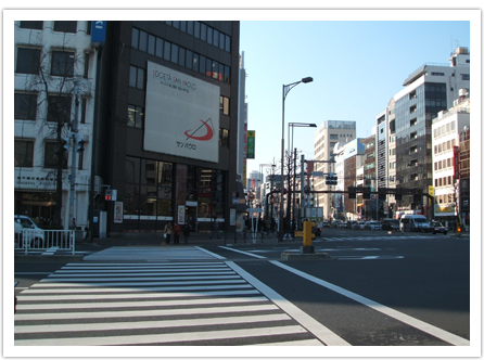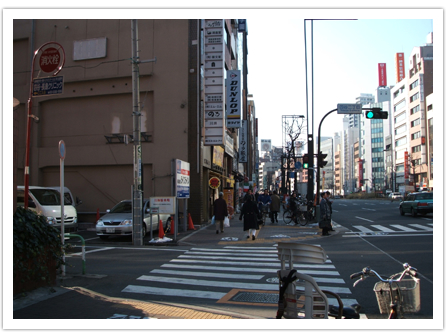 四ツ谷見附交差点。交番の前の横断歩道を渡ります。サンパウロのテントが目印。