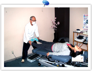 左右の足の長さの違いや背骨の硬い部分を調べていき施術のポイントを決定します。
